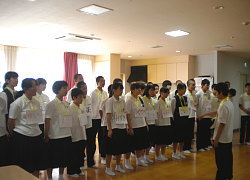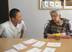 6月12日に訪問して下さいました越知町立越知中学校1年生の皆さんと一緒に歌やゲームに楽しい時間をすごしました。 交流会最後の校歌やふるさとの合唱では、歌声に涙する利用者さんもおられました。