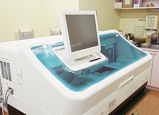 e 411」という分析器を導入しました。この分析器はPSAを採血からおよそ35〜40分で調べる事が できるので前立腺がんの素早い診断及び治療判定に役立つと期待しています。